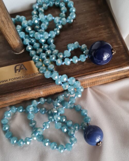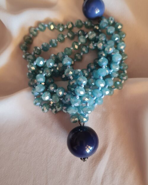 - Collana lunga con cristalli di vetro annodati a mano Materiali anallergici: cristalli di vetro, resina