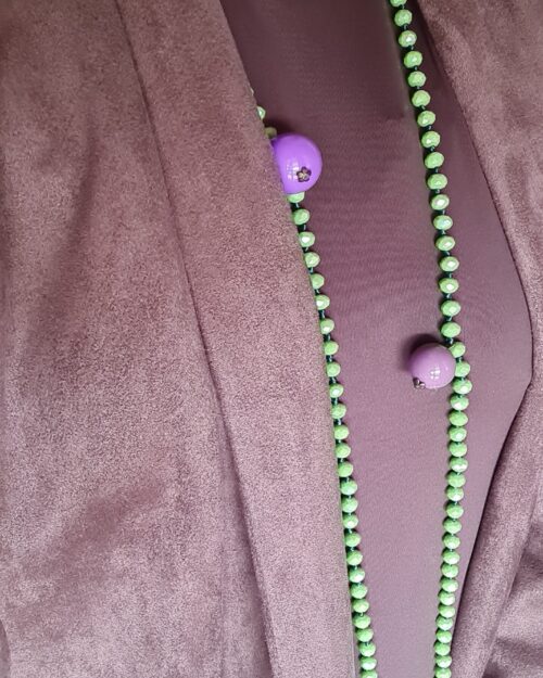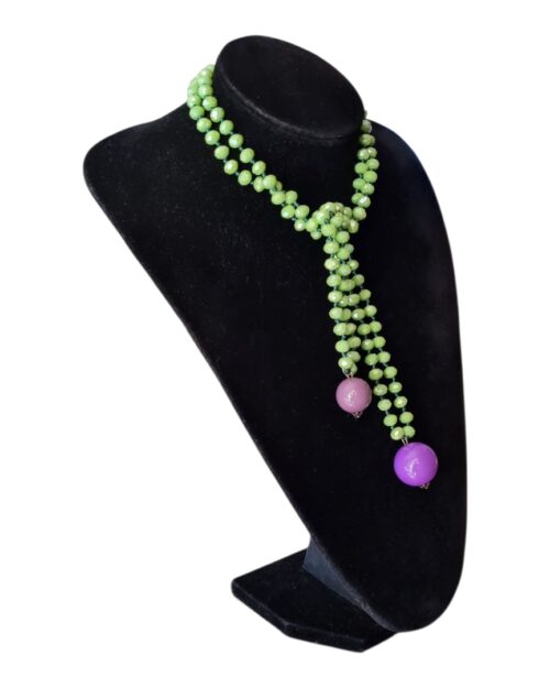 - Collana con cristalli annodati a mano Materiali anallergici: cristalli di vetro, resina Misure: lunghezza 120cm circa Colore: verde pistacchio, viola