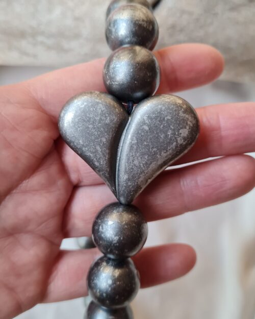 - Collana girocollo bicolore, con sfere in resina color argento e piombo Materiali anallergici: sfere in resina, catena in alluminio color argento Misure: lunghezza 45 cm circa piรน catenina di estensione di 7 cm Colori: argento e grigio piombo