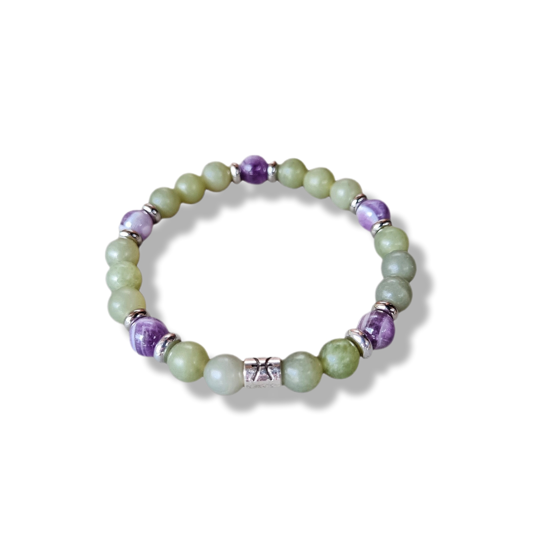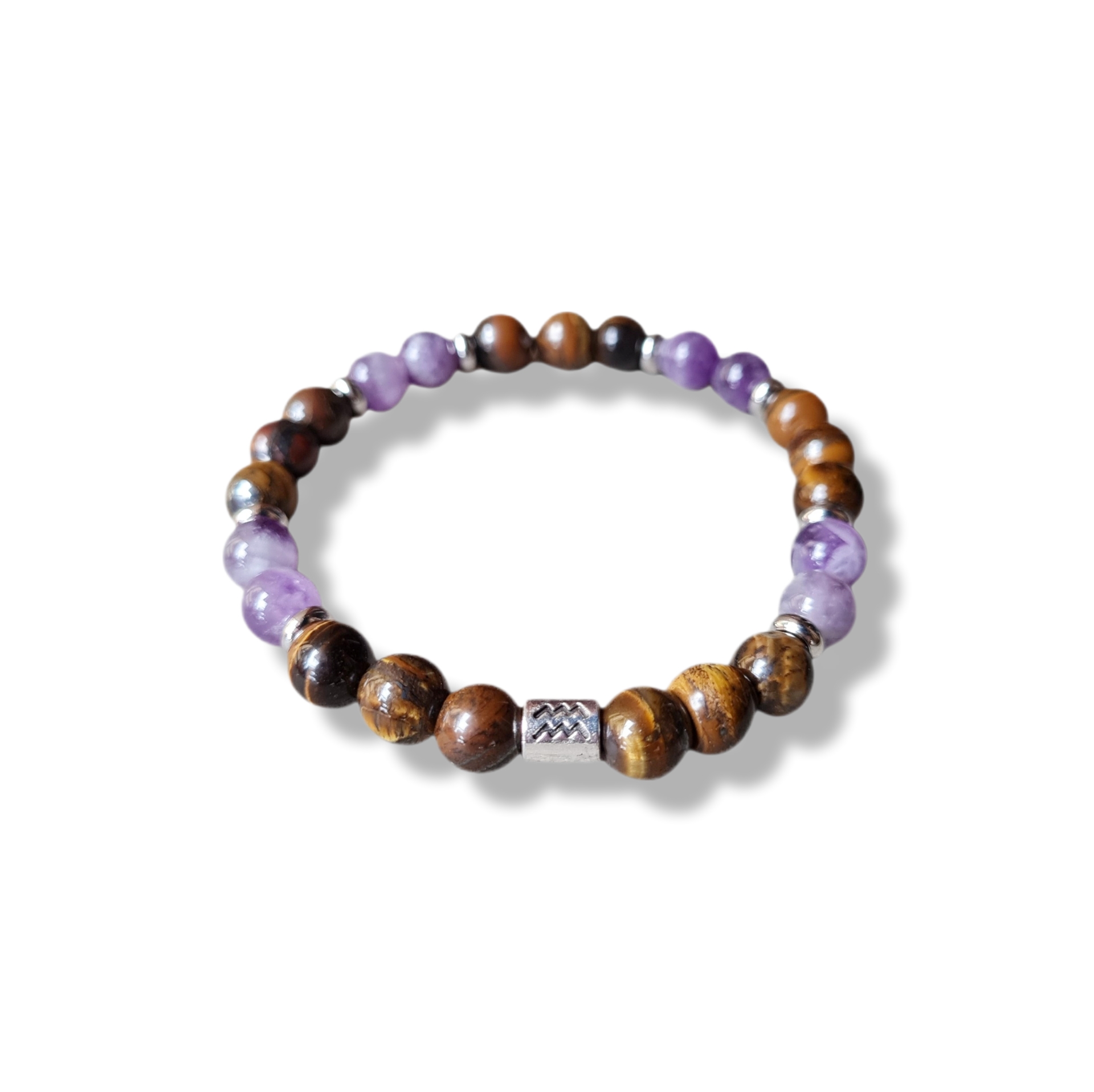 Bracciale elastico , segno zodiacale Acquario, pietre portafortuna: ametista e occhio di tigre